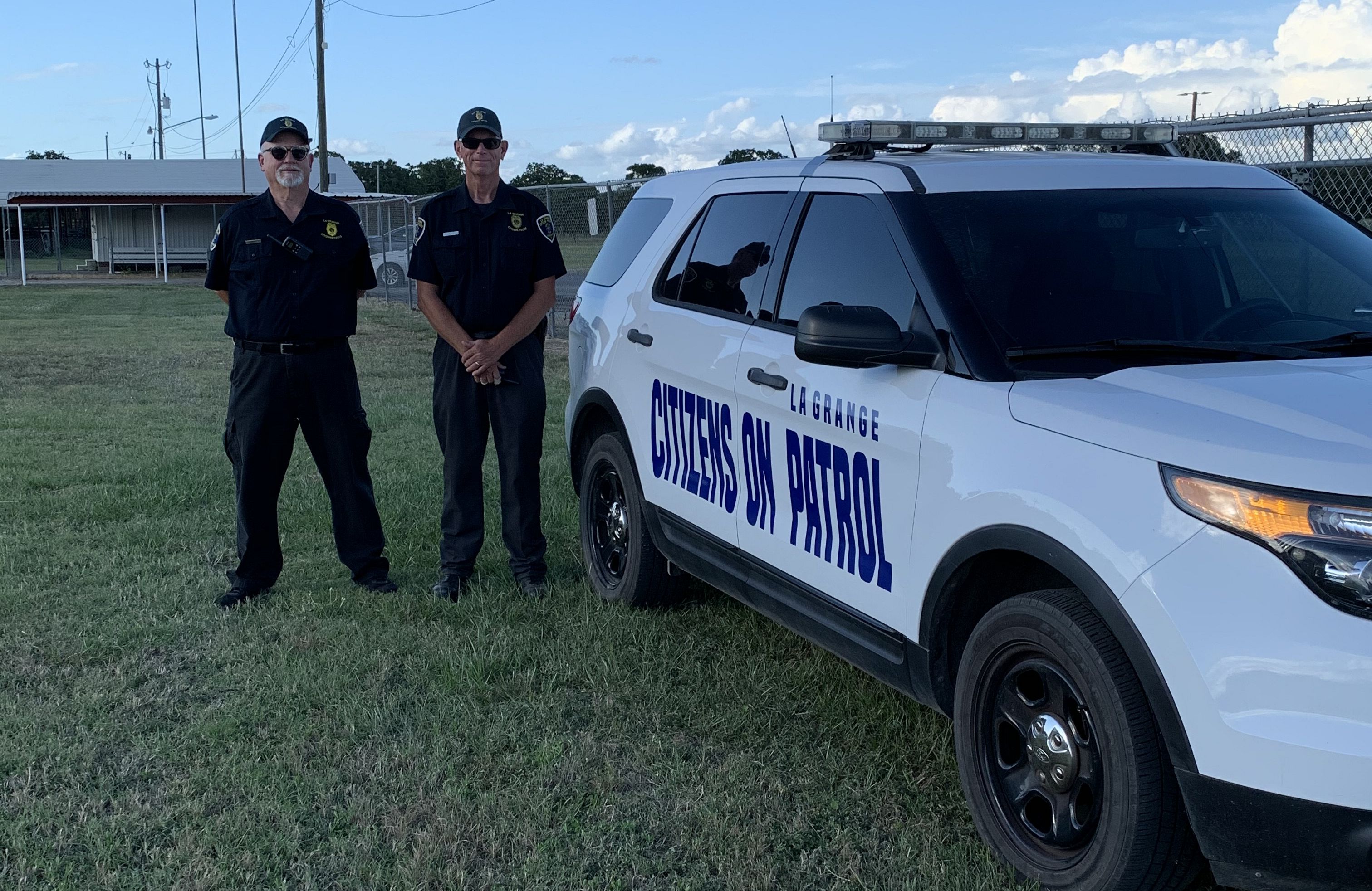 Graduates of the La Grange Citizen Police Academy Alumni Association are eligible to join the Citizens on Patrol (COP) program. COP members patrol the city to act as an extra set of "eyes and ears" for the police department. Members patrol in a retired police cruiser outfitted with an amber light bar and police radio. COP members do not carry guns or have arrest authority, but they are authorized to write warning and tickets for handicapped parking violations.